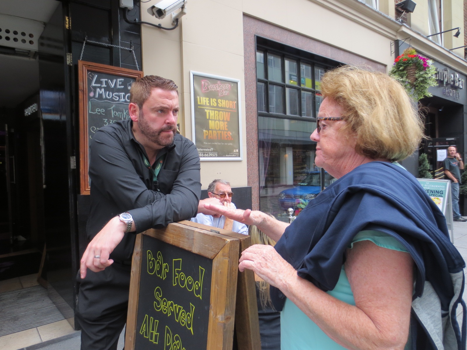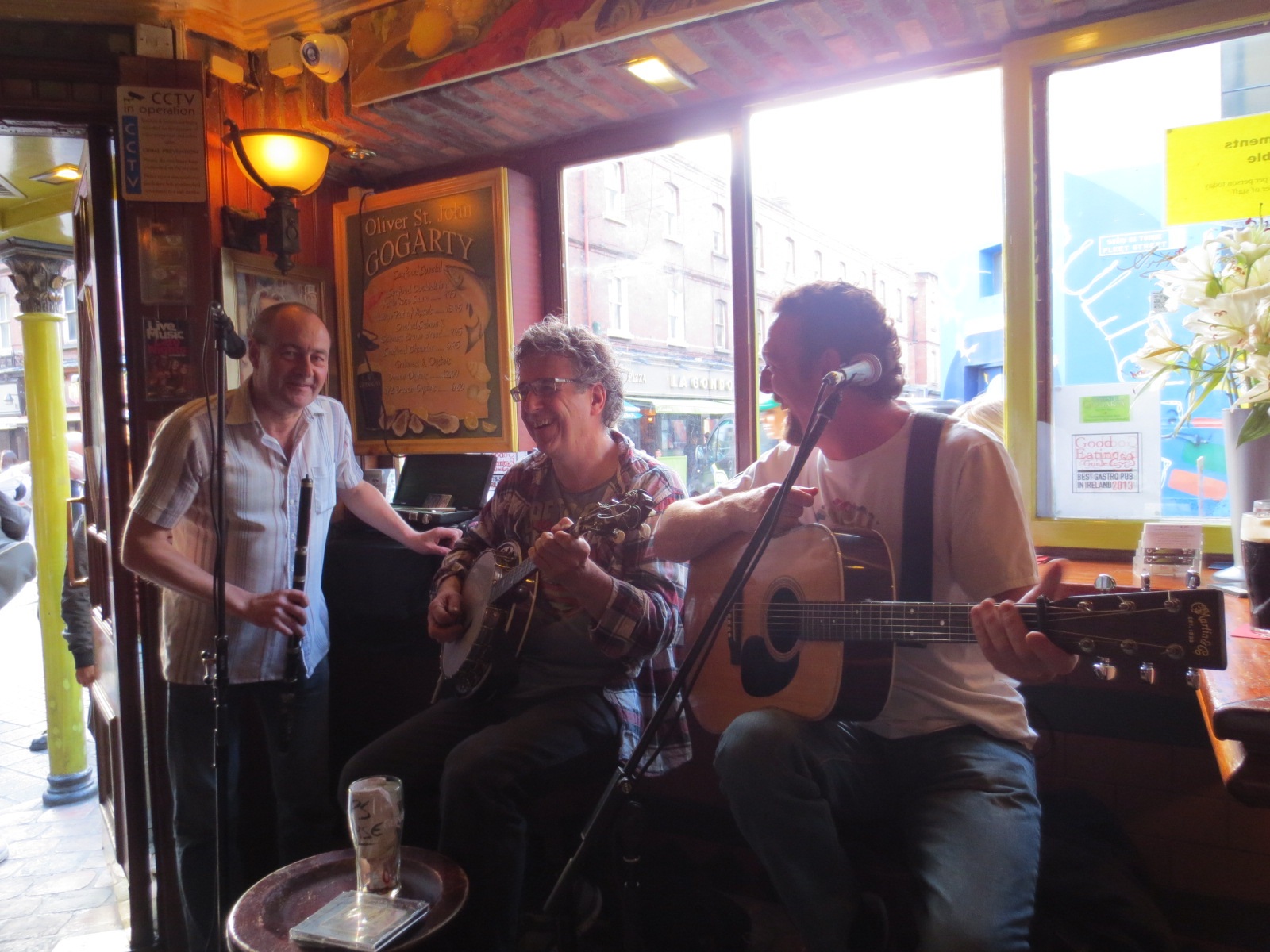 With grim determination we decided to wade through the throng and head for (by now) well known territory. Personally, I like trying out as many new places as I possibly can, but given the stress and the strain on my co-traveller, I decided to adjust a bit to her needs for comfort. Not at all unpleasant as we soon found ourselves in the Temple Bar area and right back with Patrick at Buskers.