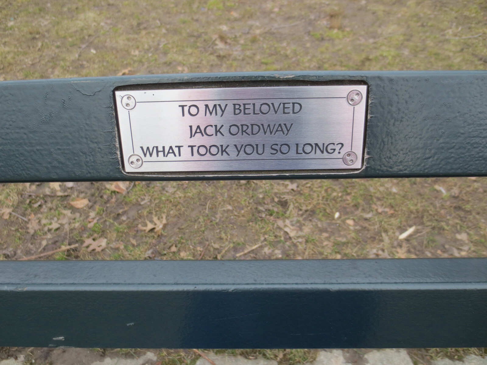I loved Central Park, I must say. It was more fall-like than spring-like at the moment, weirdly, but in good weather this is the place to go. I didn’t know the benches had dedications on them, not quite sure what you have to do (or pay) to get a plaque on there, but I took pictures of quite a few of them. Some moving, some funny (and some just Sting!)