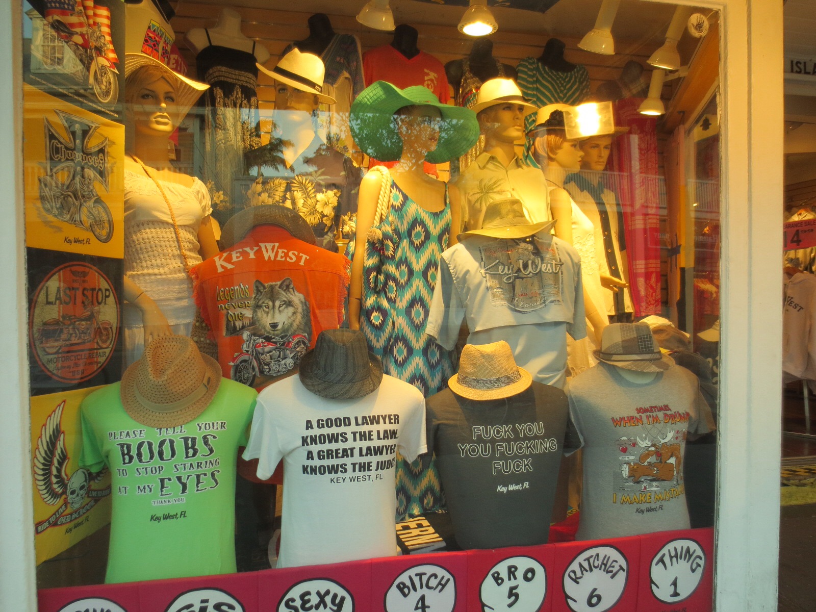 Key West is full of weird and fun stuff, all the while being more chill than Miami itself. You can’t imagine the amount of tshirt-shops and “Psychic Reading”-signs. There’s also the little family of rooster/hen/2 chicks that was wandering the streets at any odd hour (you could hear the rooster do a cock-a-doodle-doo every now and then. Yeah yeah, I know, there’s probably more than just the one, but I only saw that one little hen family so that’s what I’m going with. It’s a better story this way anyway ;-)) This was another night passed eating excellent food and treading pavement, we enjoyed Mallory Square (and the gorgeous sunset!) and some window shopping/actual shopping (Eystein saw t-shirts… I knew right then we were doomed. I was right). We also spotted Darth Vader, playing a brightly blue-lit banjo… Yeah… I still regret not giving him some change so I could’ve taken a picture of him.