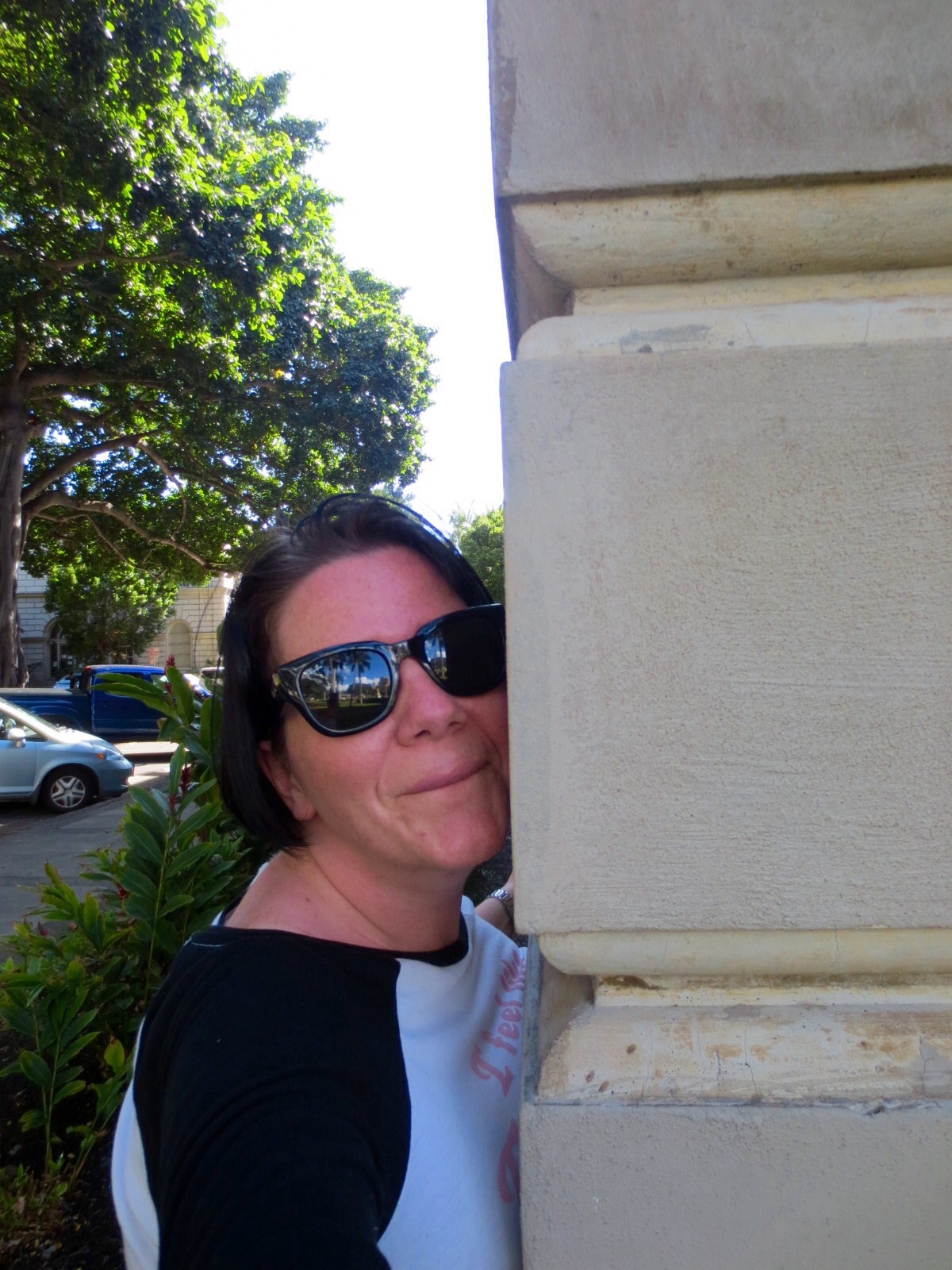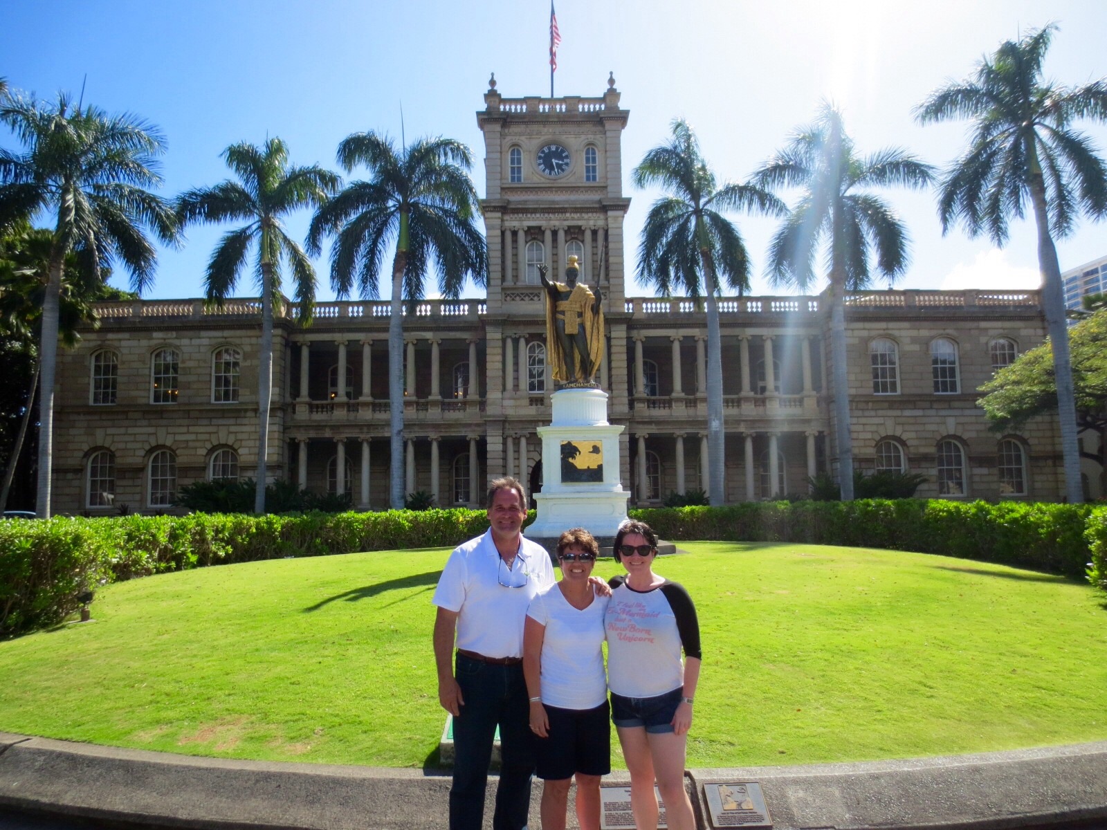 We (meaning Paula, David and I) got out at Hawaii Five-O headquarters (*SQUEEEEAL!!*) and took loads of photos. We only had a few minutes since the others (who obviously didn’t know what they were missing!) where waiting in the shuttle. I took the opportunity to take tons of photos of the statue, the HQ itself, Iolani Palace in the back and hugging the HQ-wall before leaving… Once a fan, always a fan!
