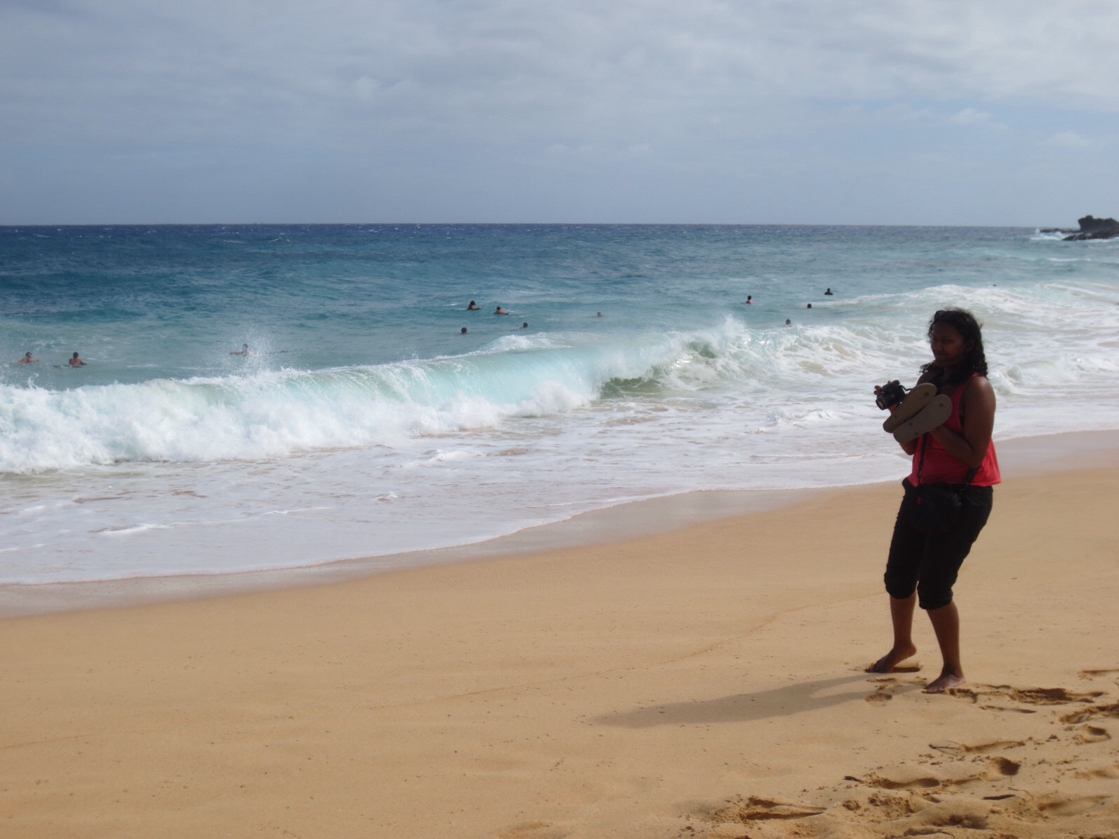 I signed up, got Ewnett with me and got in the van. Margaret was our guide for the day and she drove us through rainforest, to Kailua, to Lanikai Beach, Sandy Beach (famous for its waves and I could see why) and on to several lookout points and the Blowhole! We stopped in Kailua (meaning “toilet water”, nice name, people… good choice :-P) to have lunch, traditional Hawaiian cuisine and generally had an allout good time. I was exhausted again when we got back, the good, old “so many impressions” kind of tired… Unfortunately, my camera is pretty crappy so it really doesn’t convey the fantastic views we got… (but I guess that’s just another reason for you to come see for yourself) 😉