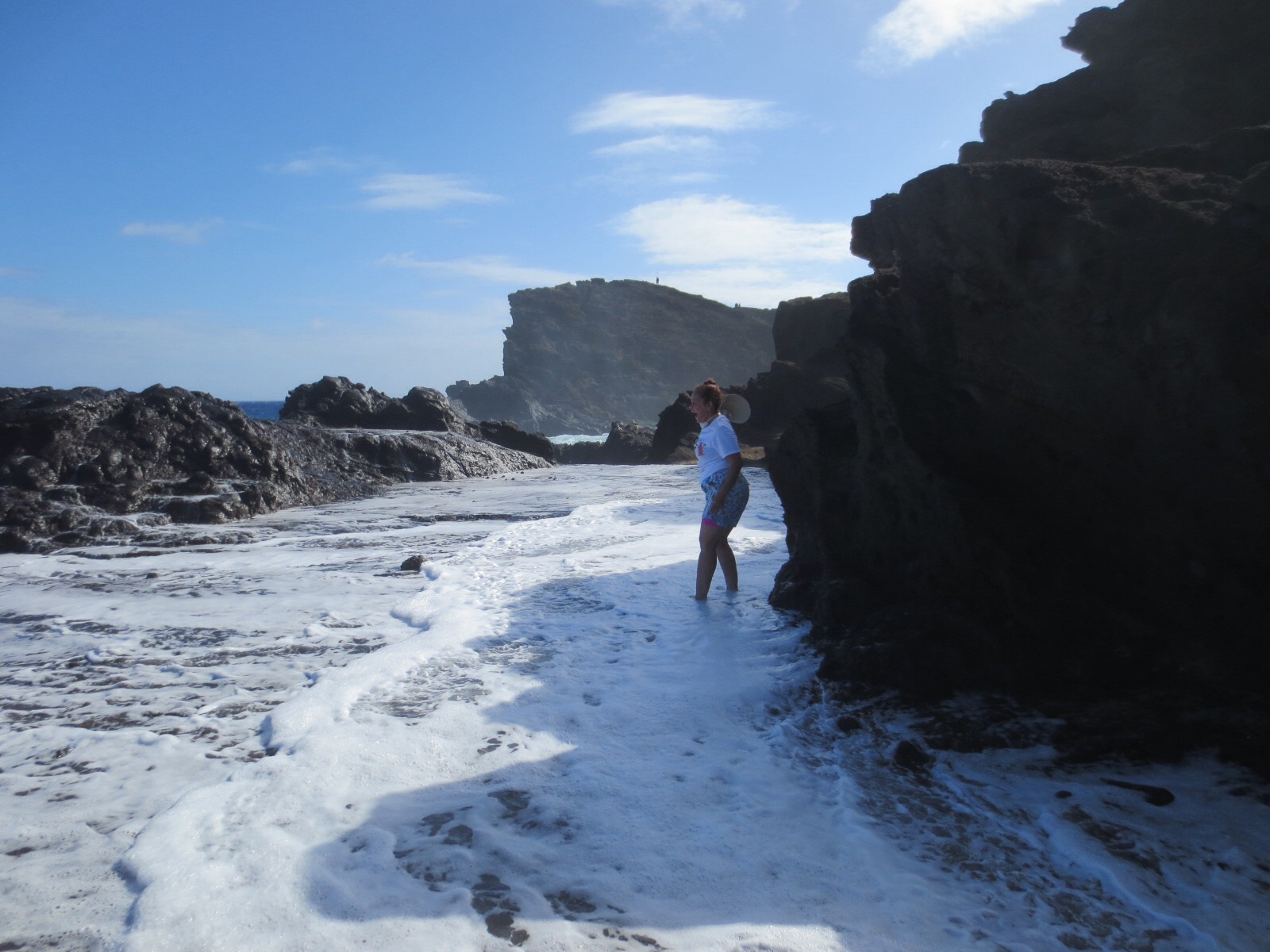 Diane laughing her ass off (her husband, Miguel, was standing right AT the blowhole. He’s drying his clothes now…)