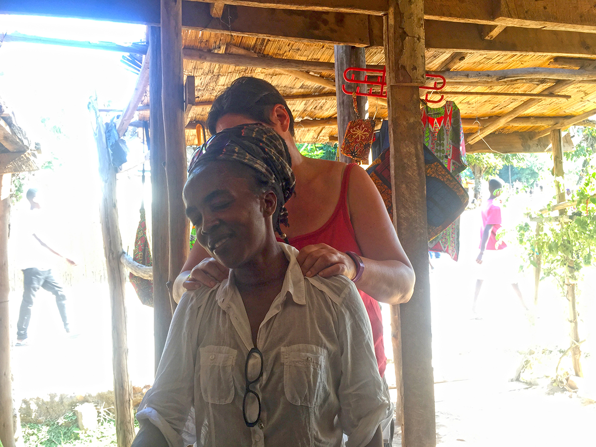 Claire giving Beaurah (our tailor) a massage