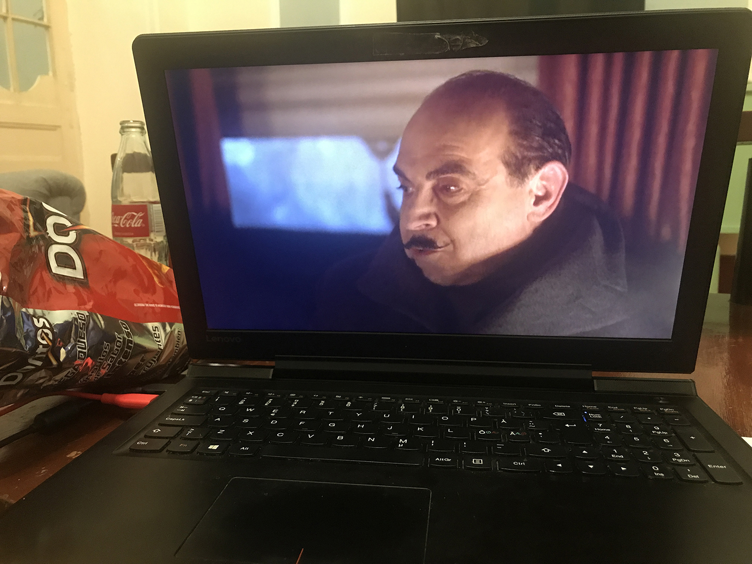 I brought my laptop to one of the common area’s couches, plopped myself down with my supplies and watched Agatha Christie’s Poirot the whole rest of the day.